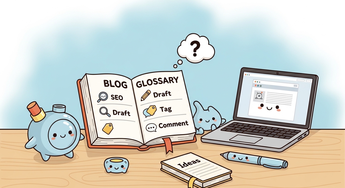 このページでは、ブログ初心者が最初につまずきやすい用語を厳選し、わかりやすくまとめています。辞書のように、必要なところだけ拾い読みしてくださいね。